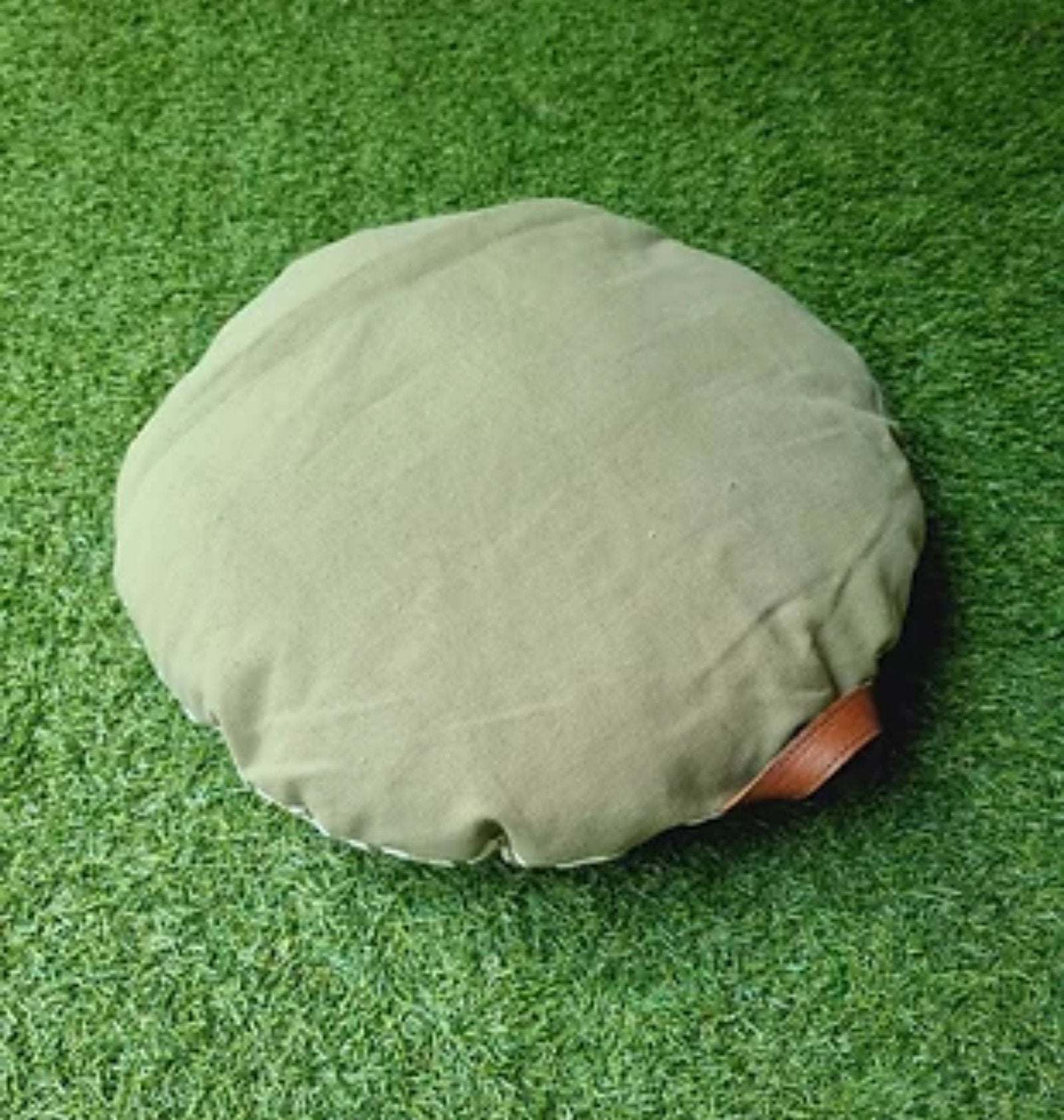 Olive Stripe Circular Cushion In Cotton 20*20 Cm