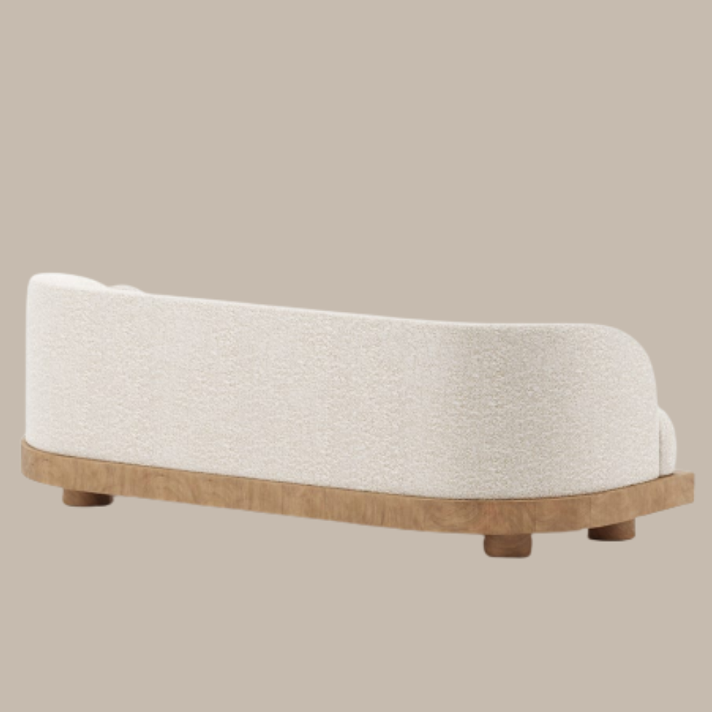 Curate the ultimate cosy snug in your home with the Urban Classic Boucle Sofa . This chic take on comfort combined with style is upholstered in a soft to touch boucle with a off - white hue, and set on hard wood rounded feet for a soft yet polished look. Material -Solid mango wood + Boucle . This classic, comfortable and stylish set can effortlessly upgrade your space .