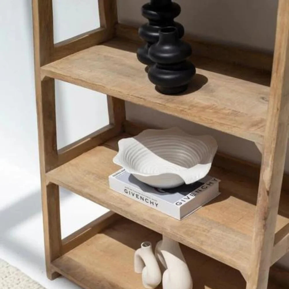 Constructed from premium mango wood, the Urban Den Solid Wood Ladder Bookcase boasts robustness and longevity for sustained utility. Its contemporary aesthetic and organic finish render it adaptable to diverse settings, whether adorning your lounge, study, or sleeping quarters.