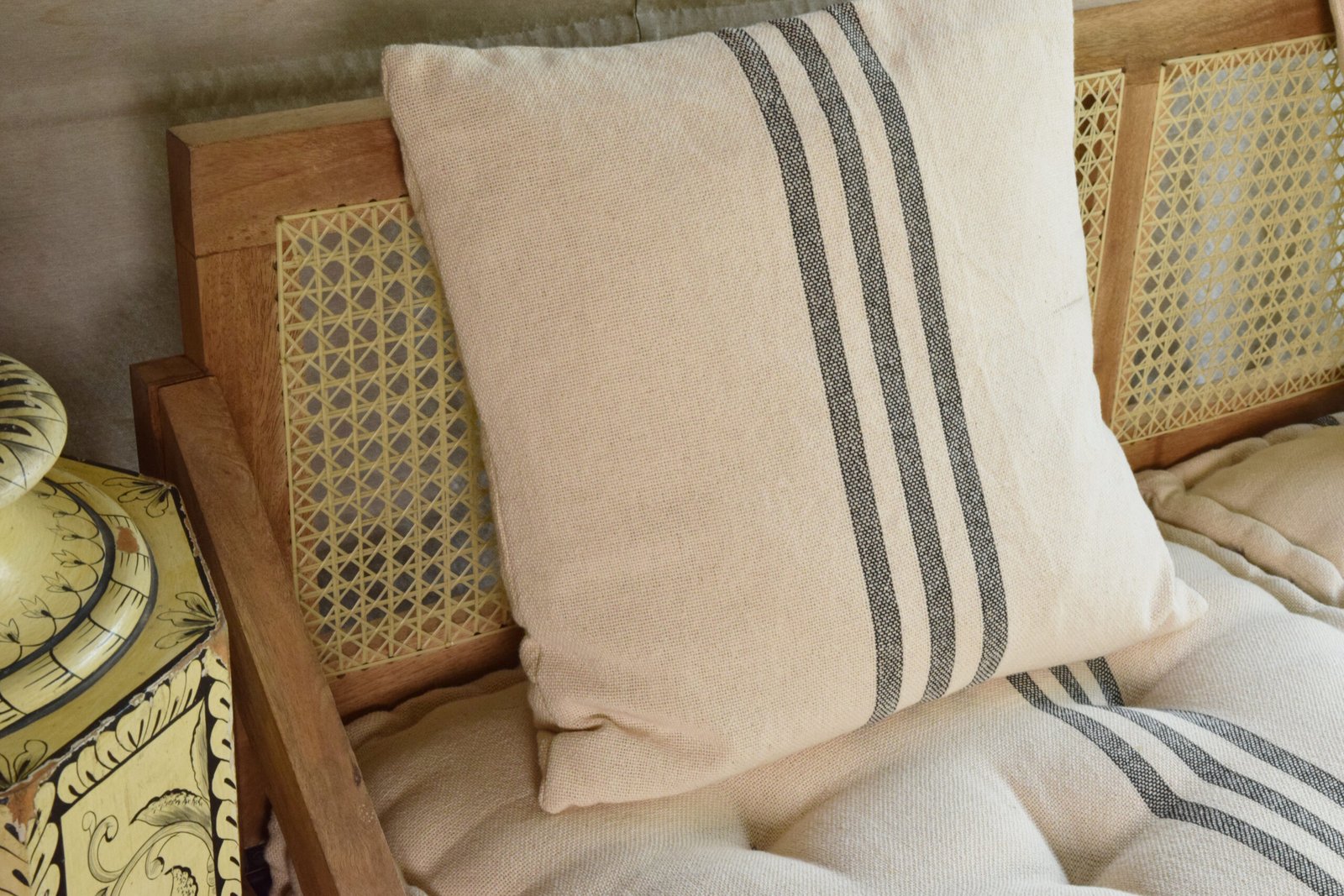 Rattan sofa weaves meet the summery beauty of stripes in this sofa that captures the warmth of nature and brings it to your humble abode. Stuffed with recycled cotton that retains its stiffness and a comfortable printed canvas covering, this is just what you need for your home to create that effortless minimal but striking interior beauty.