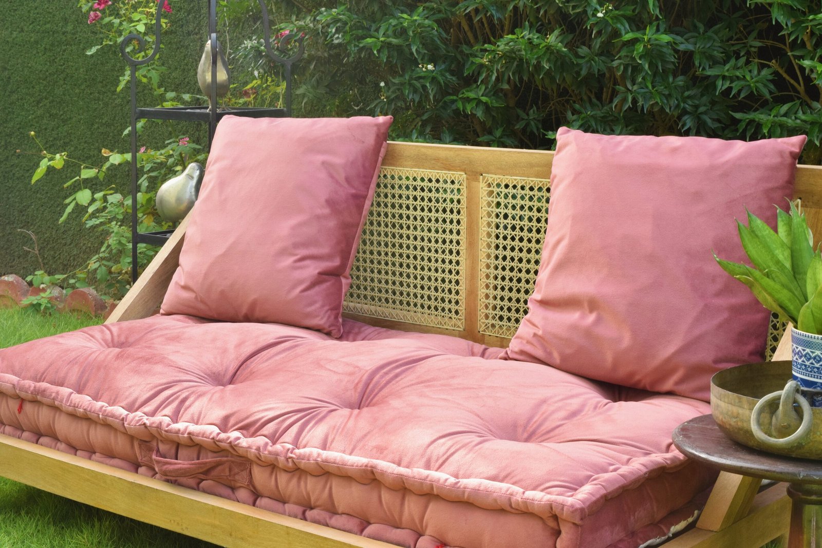 The bohemian beauty of rattan meets the elegance of velvet in this sofa seating furniture. Truly made for comfort and style, the product features Solid mango wood, a wooden frame with rattan woven back and seating, and a cushioning of delicate velvet fabric that is smooth to the touch and soft to sit on.
