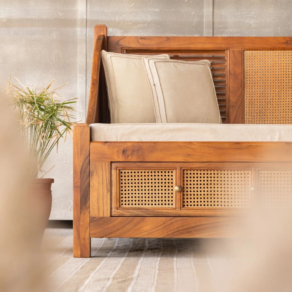 Home Shop Furniture Benches & Stools Sand Natural Rattan Day Bed with Storage