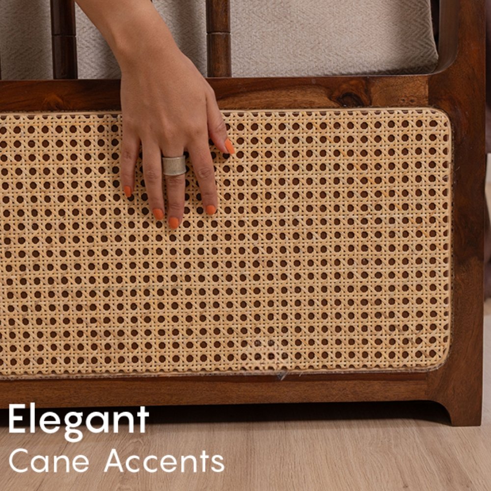 - Design Features: Sturdy wooden frame with elegant cane weaving & brass accents